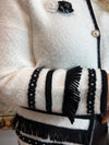 Gloria is a smart but elegant Cardi in winter water with black detail .