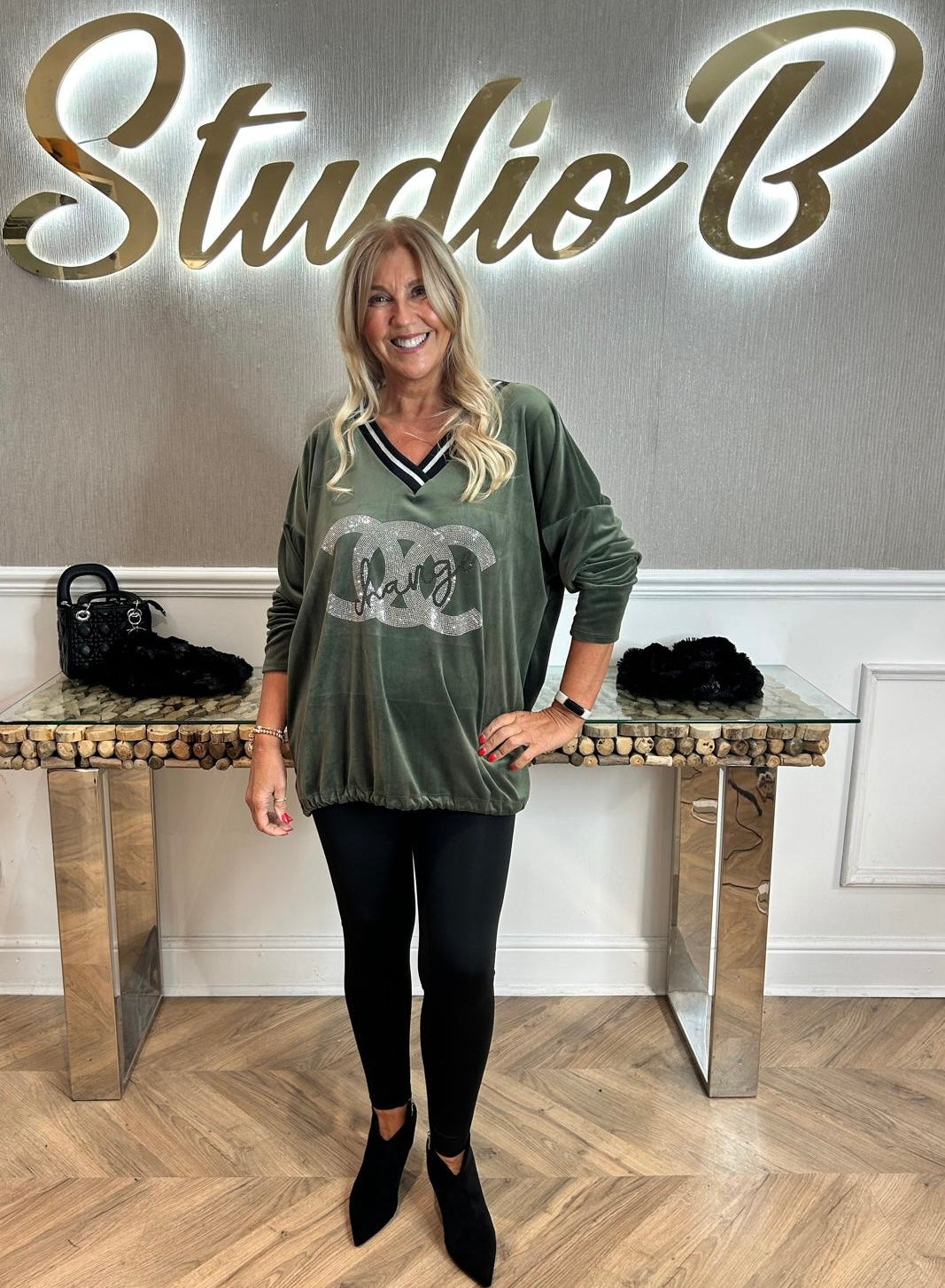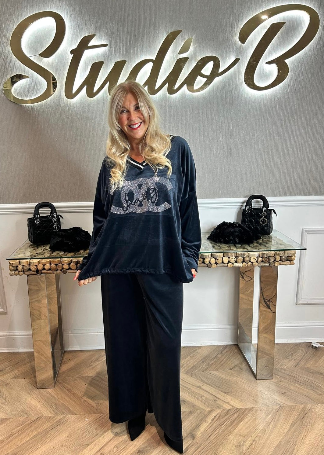 Glamorous velour suit aspires with pretty motifs super comfy fitting 12/22