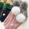 Faux Fur Pompom & Decorative Heart Gloves in Silver