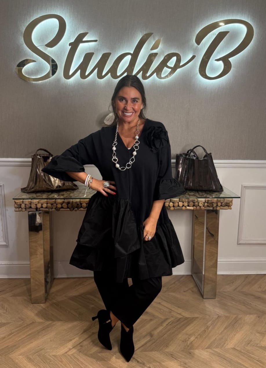 ID Flower tunic is a stunning v neck in jesery with a taffeta frill plus detachable flower