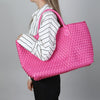 Luxury Woven Tote Bag with Purse Bag in Fuchsia