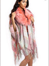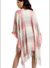 PALE PINK AND MINT GREEN TARTAN CHECK BLANKET CAPE WITH TASSELS
