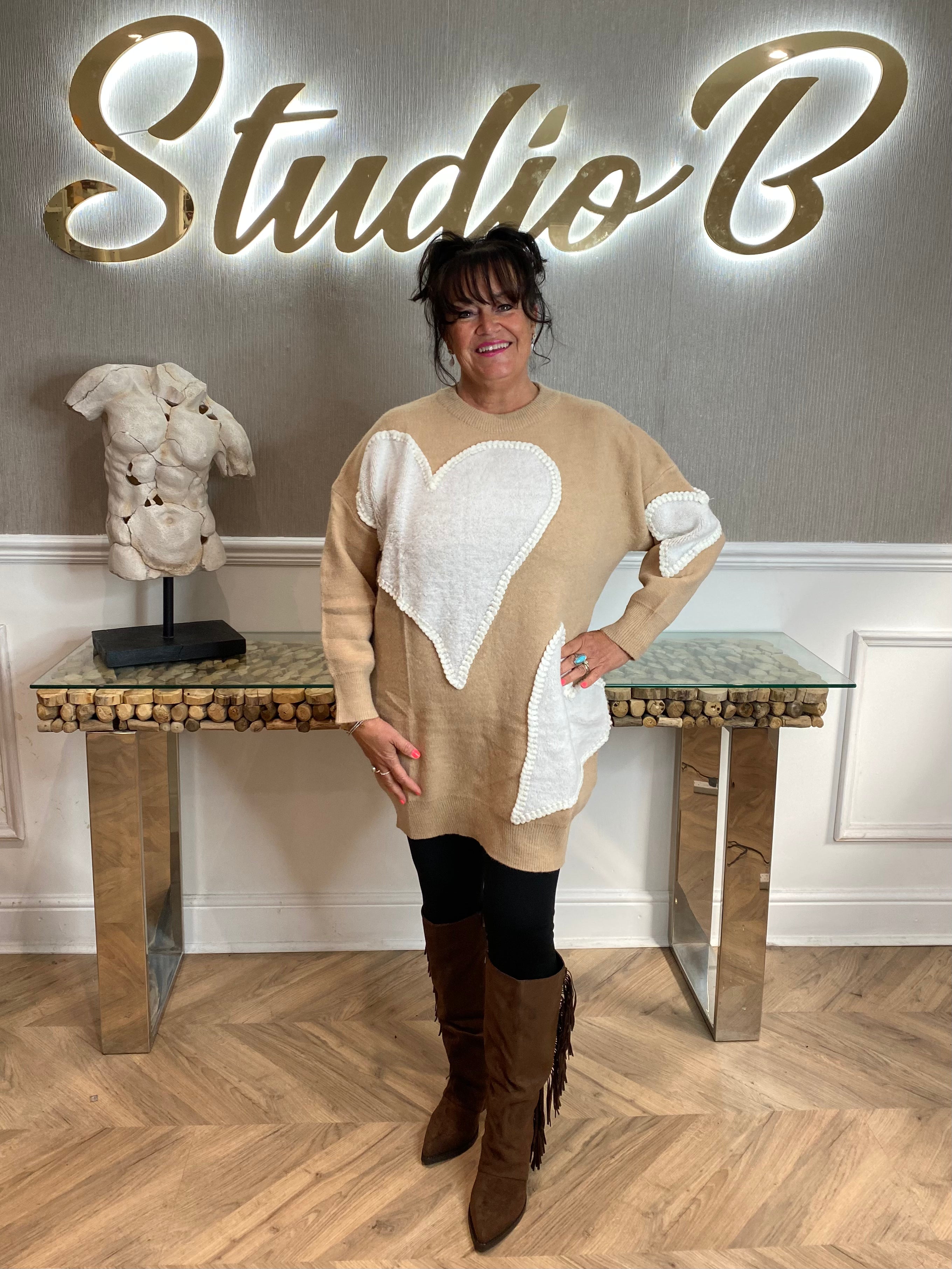Stunning Pink heart longline jumper or how about a beautiful Tan fits 10/16