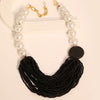 This stunning necklace blends the delicate beauty of seed beads with the classic elegance of cream faux pearls.