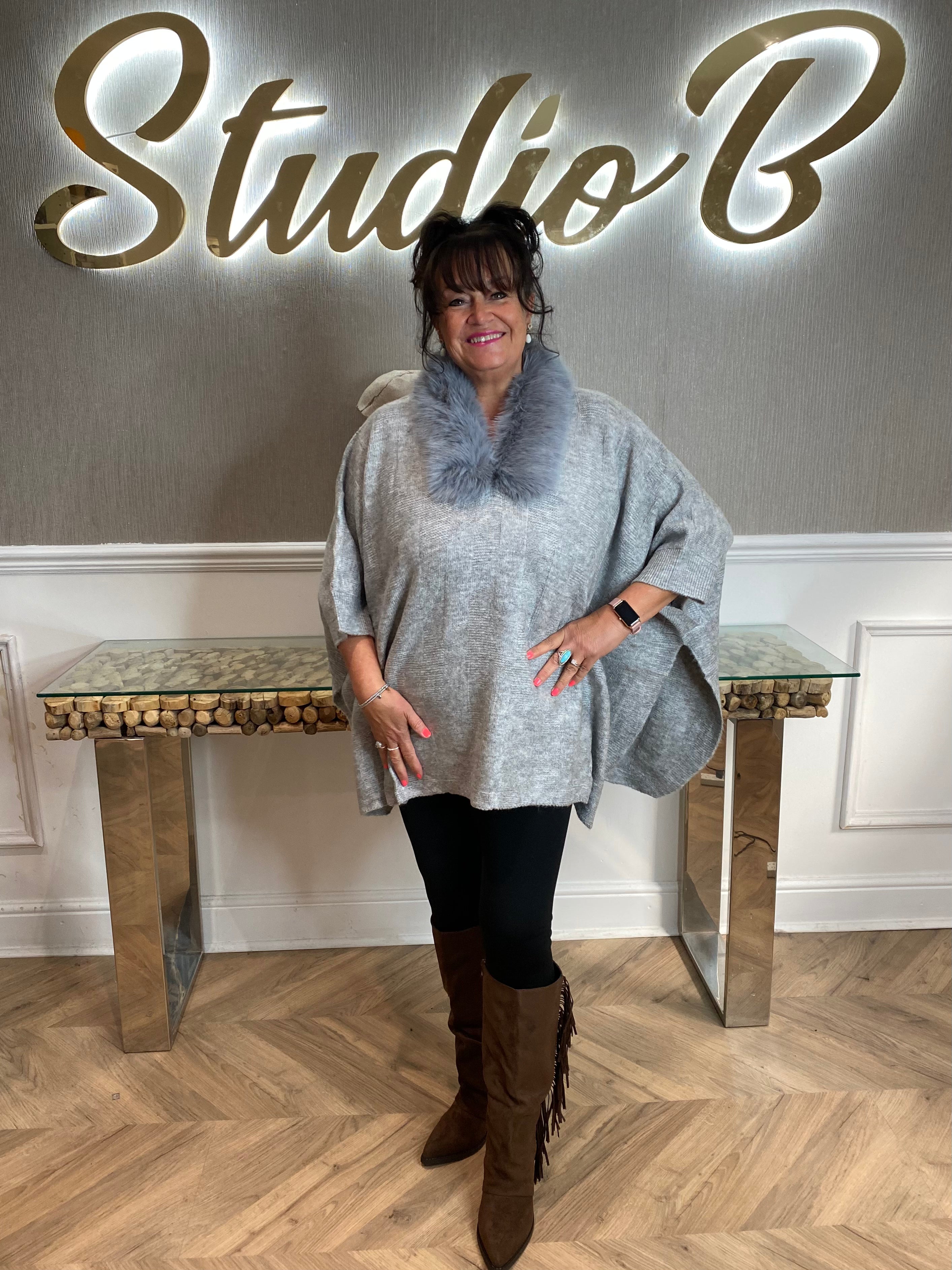 Whitney a gorgeous Freesize poncho with detachable  faux fur Stupid hood.